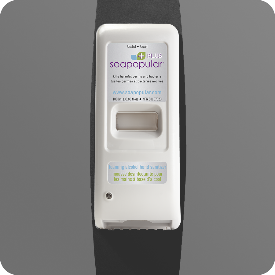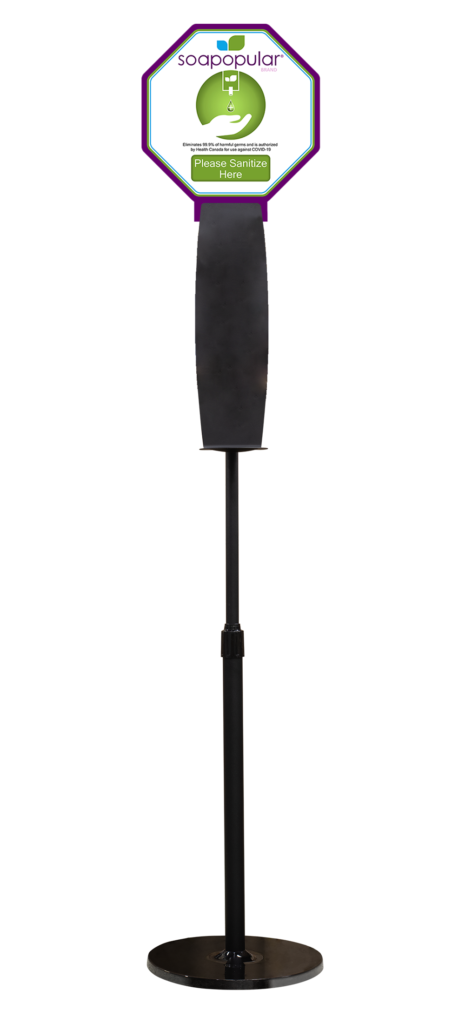 Soapopular® Black Adjustable Dispenser Stand seamlessly integrates with our Automatic Dispenser unit and choice of our 70% Alcohol Hand Sanitizer or Alcohol-Free Hand Sanitizer formula to deliver a complete hand hygiene system.