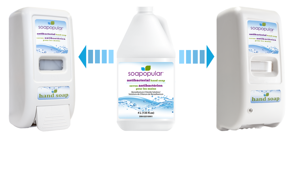 Soapopular® Antibacterial Hand Soap Bulk-Fill Refill Product Code: 10004, is used to refill our Antibacterial Manual (10106) and Automatic (10222) dispensers.