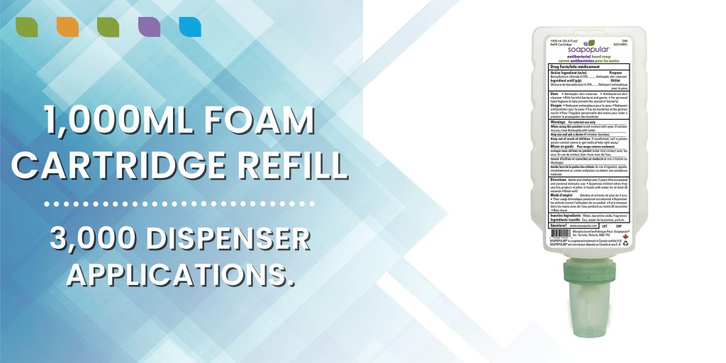 Soapopular®Antibacterial Foam Hand Soap Cartridge Refill System offers a click-and-go design to seamlessly swap empty cartridges with new ones in our dispensing units. Quick and easy maintenance that reduces downtime and refill times.
