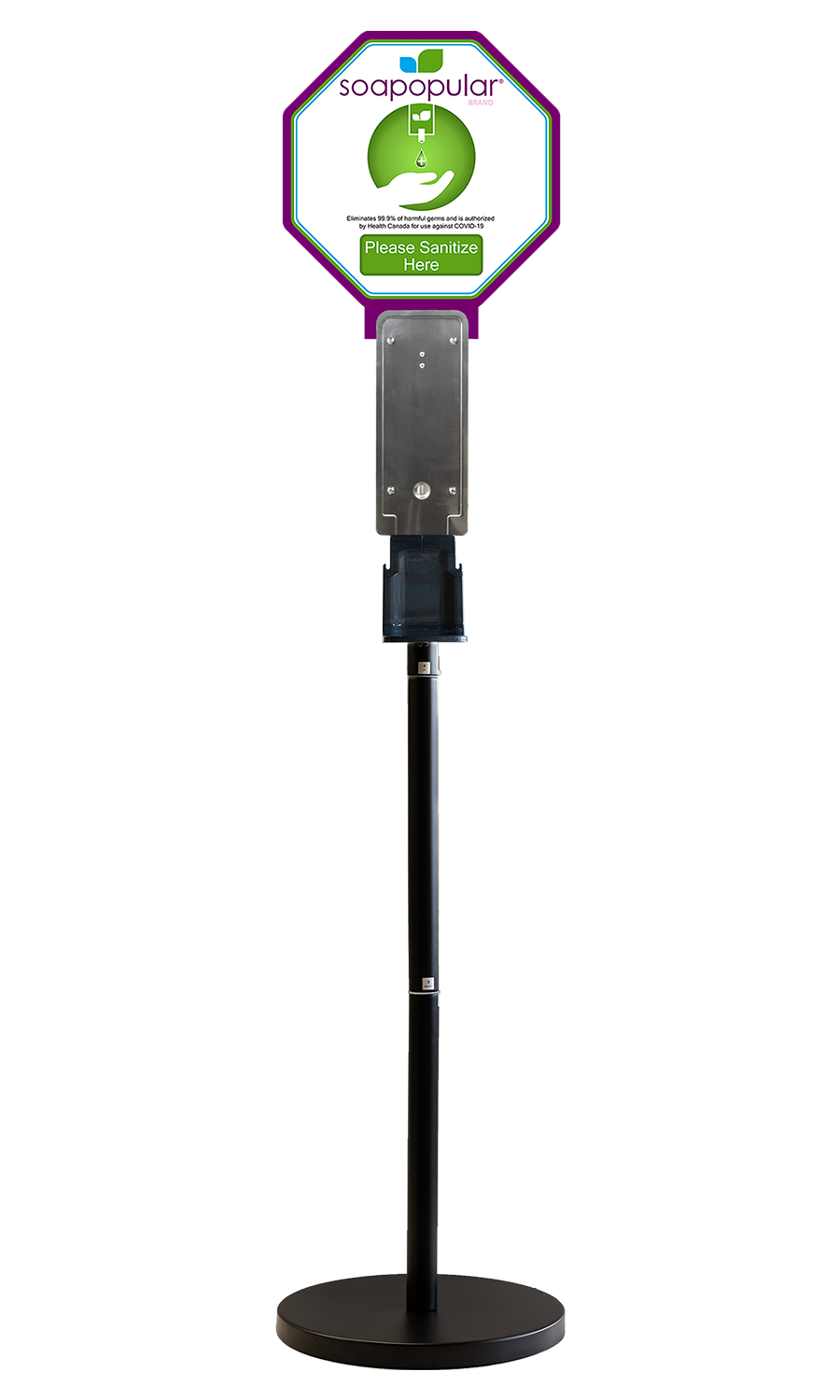 Purpose-built for Soapopular® Automatic Dispenser Units, this adjustable stand delivers stable placement with added flexibility to support varied user needs.